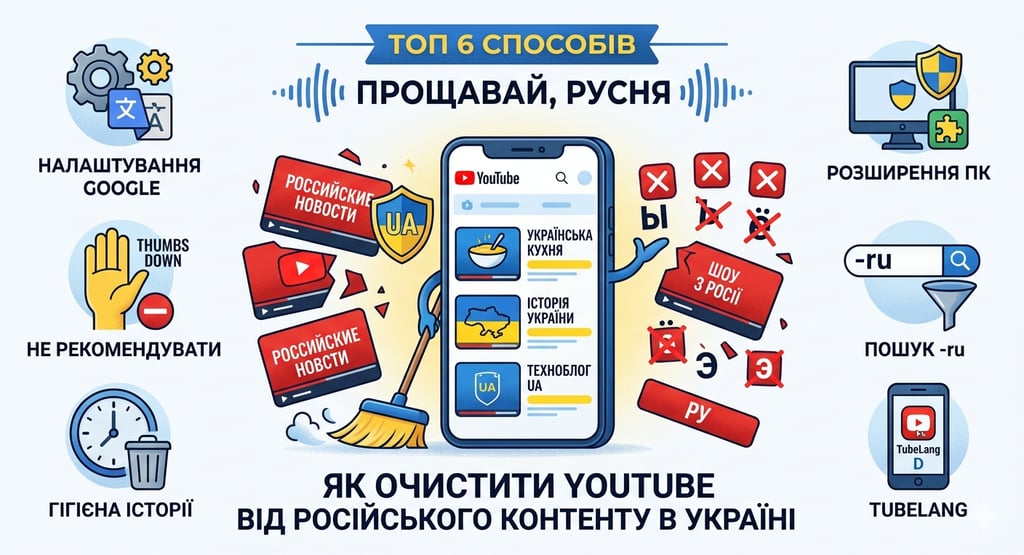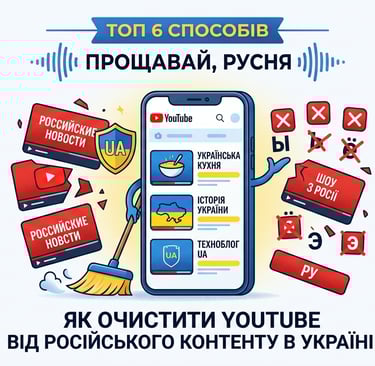 Повністю «вимкнути» російську мову однією кнопкою в YouTube поки неможливо, оскільки алгоритми орієнтуються не лише на ваші налаштування, а й на спільність культурного та географічного простору (що часто грає не на нашу користь).